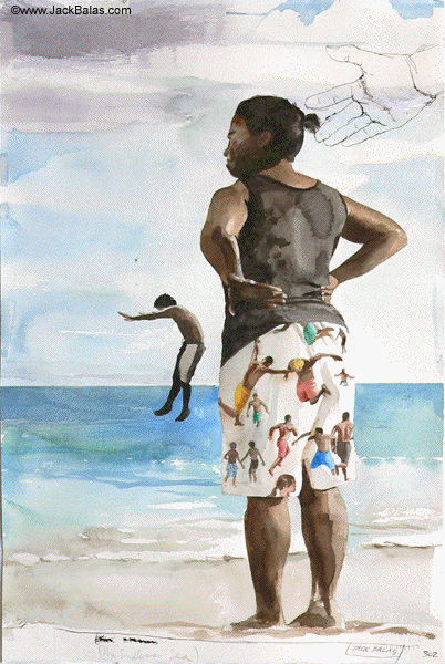 Jack Balas, 2007; THE ENDLESS SEA (#302) (study #2); watercolor and ink on paper; 23" x 15"