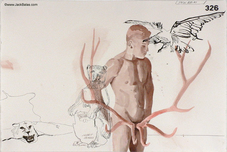 Jack Balas, 2007; MERIT BADGE (#326); watercolor and ink on paper; 15" x 23"