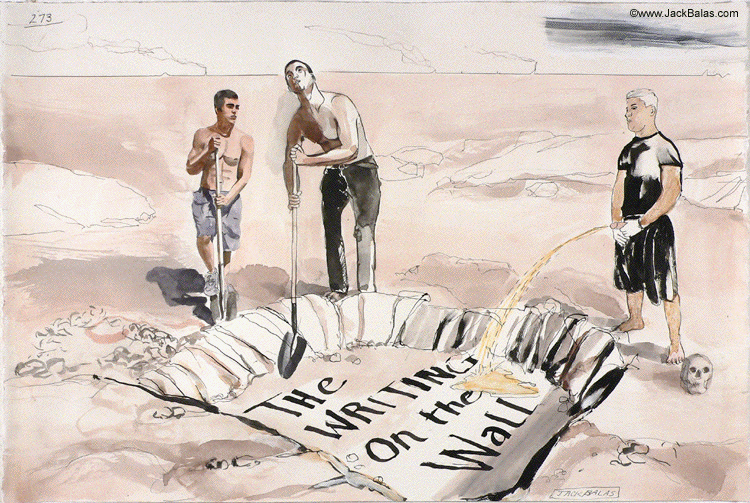 Jack Balas, 2007; THE WRITING ON THE WALL (#273); ink, watercolor and acrylic on paper; 15" x 23"