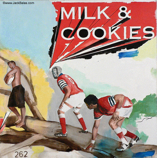Jack Balas, 2008; MILK & COOKIES (#262); oil on canvas; 20" x 20"
