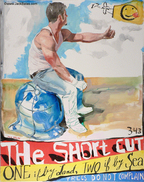 Jack Balas, 2008; THE SHORT CUT; oil and ink on canvas; 28" x 22"