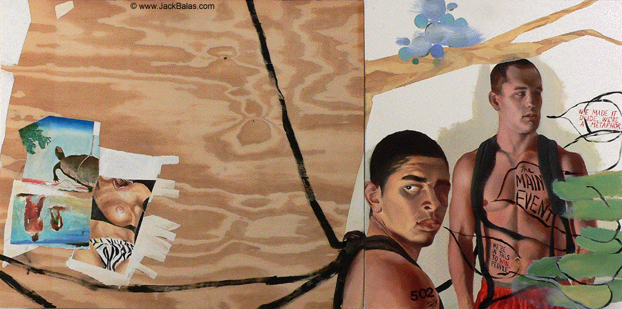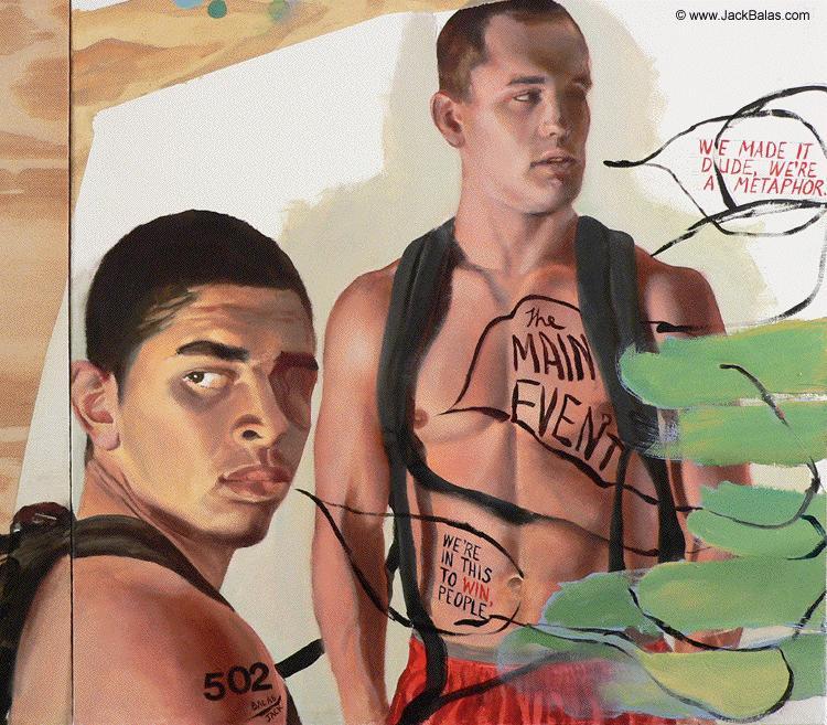 Jack Balas, 2010, THE MAIN EVENT (#502); oil on canvas and plywood panel, diptych; 24" x 48" (61 x 122 cm)