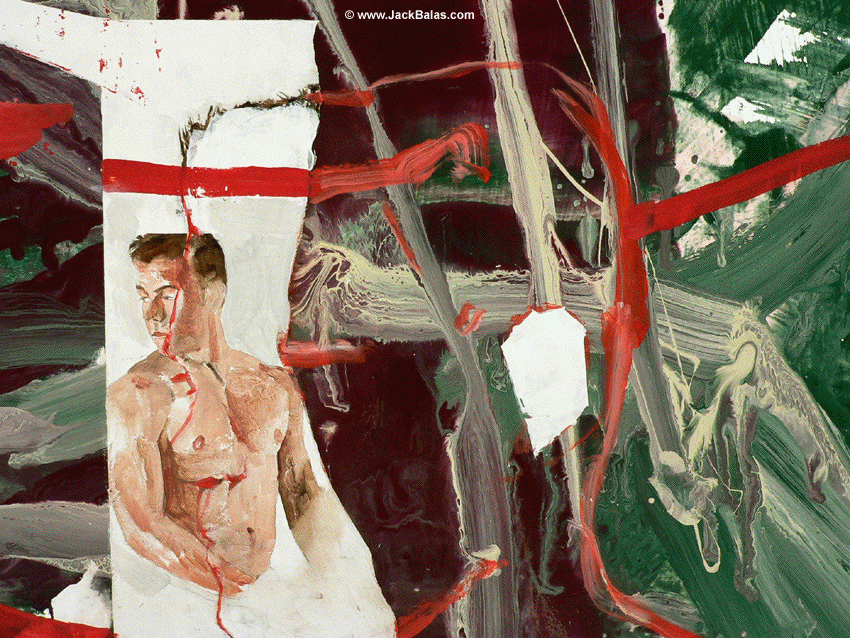 Jack Balas, 2012; WE ARE YOUR MONA LISA (# 763); oil and enamel on paper, 22" x 30"