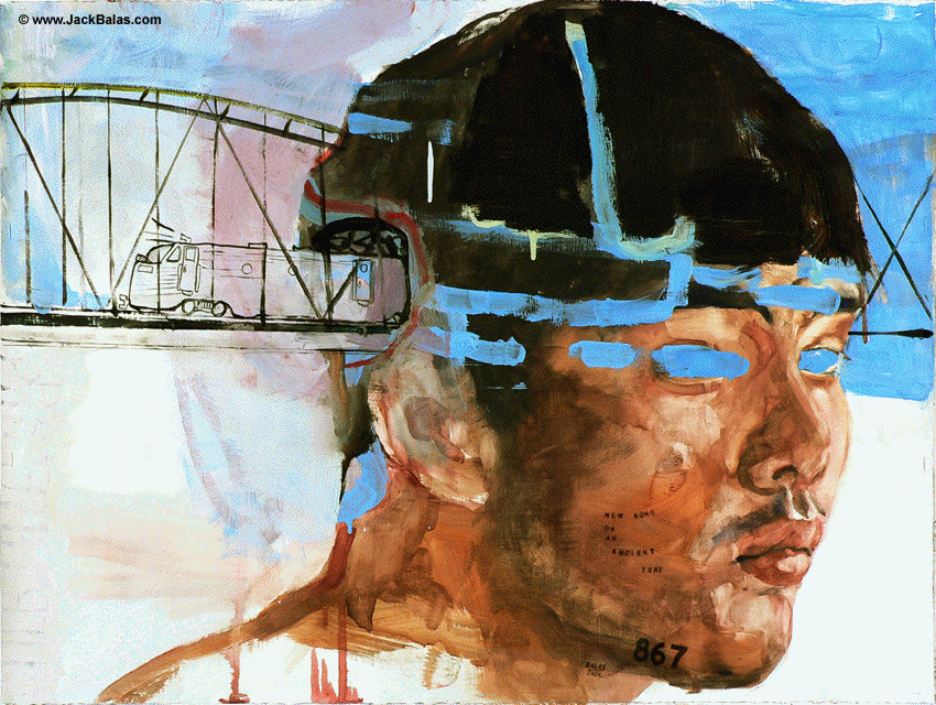 Jack Balas, 2013; NEW SONG ON AN ANCIENT TUNE (#867); oil and enamel on paper, 22" x 30"