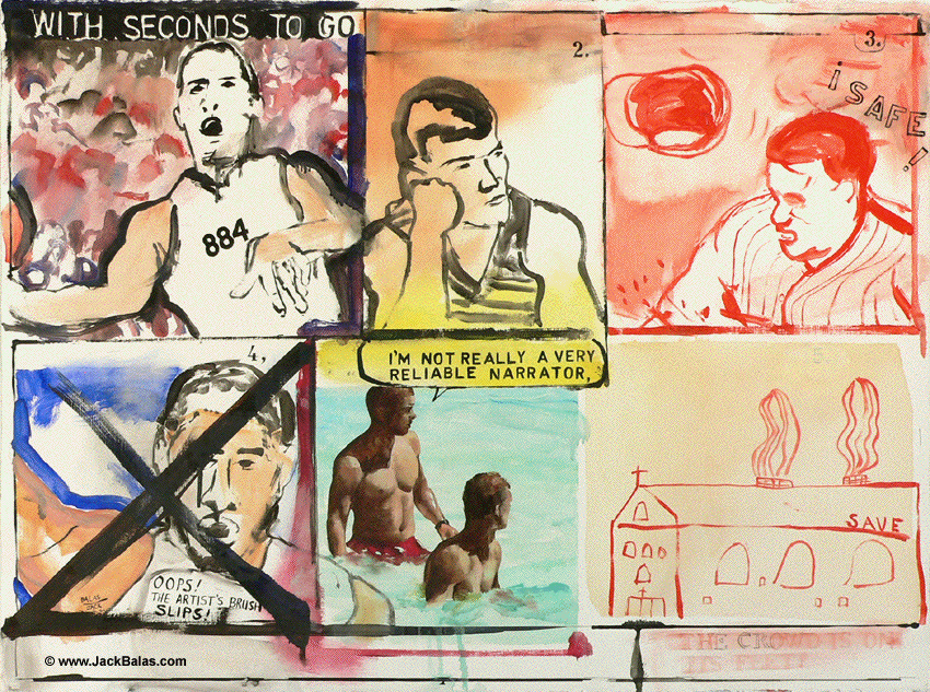 Jack Balas, 2013; RELIABLE NARRATOR (NOT) (#884); oil on gessoed paper, 22" x 30"