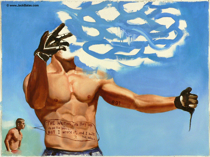 Jack Balas, 2013; THE WRITING ON THE WALL (#891); oil on gessoed paper, 22" x 30"