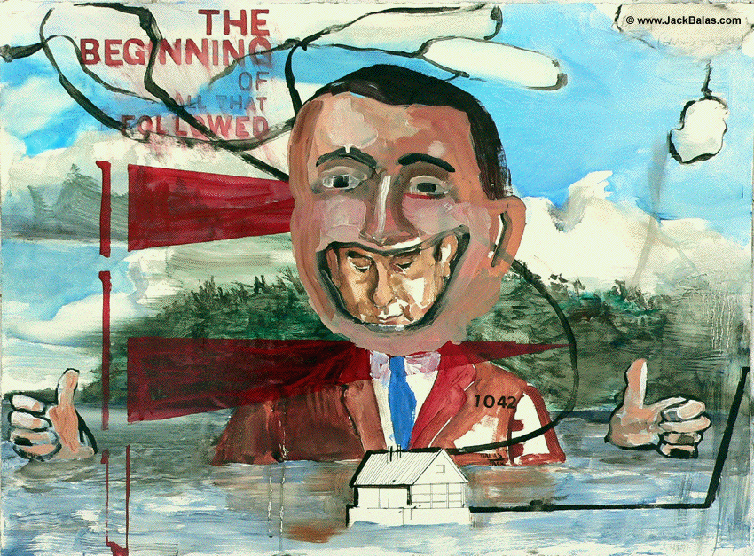 Jack Balas, 2014; THE BEGINNING OF ALL THAT FOLLOWED (#1042); oil & ink on gessoed paper, 22" x 30"