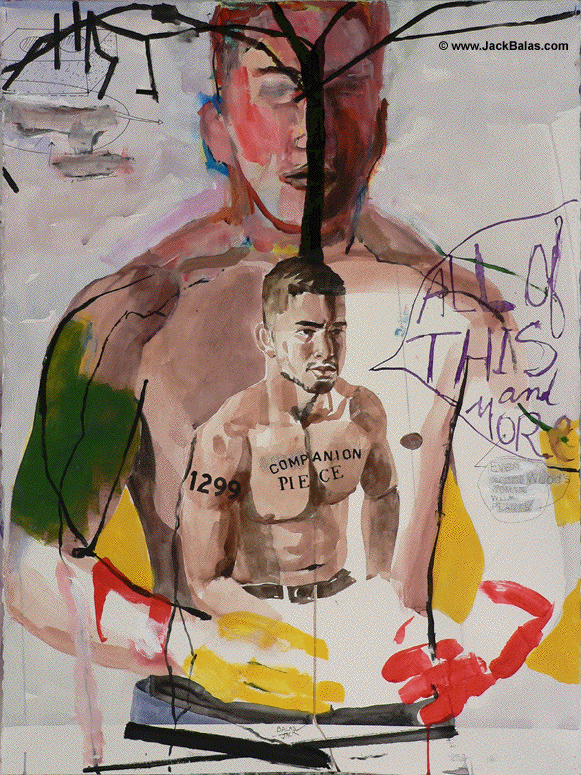 Jack Balas, 2015; COMPANION PIECE (#1299); watercolor, oil and acrylic on paper, 30" x 22"