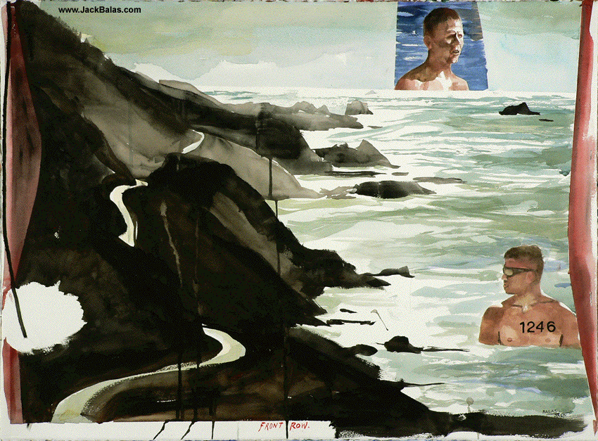Jack Balas, 2015; FRONT ROW (#1246); watercolor and acrylic on paper, 22" x 30"