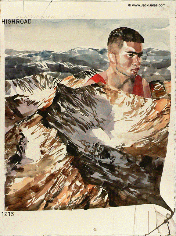 Jack Balas, 2015; HIGH ROAD (Study) (I COULD START RIGHT NOW) (#1213), Dedicated to Gail S. White; watercolor & acrylic on paper, 30" x 22"