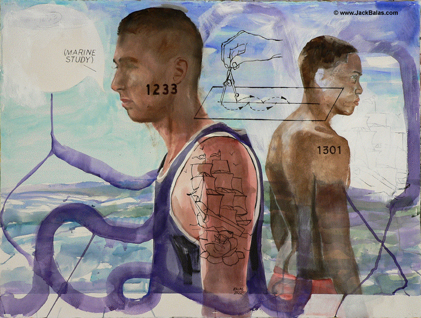 Jack Balas, 2015; MARINE STUDY (#1301-1233); watercolor, oil and acrylic on paper, 22" x 30"