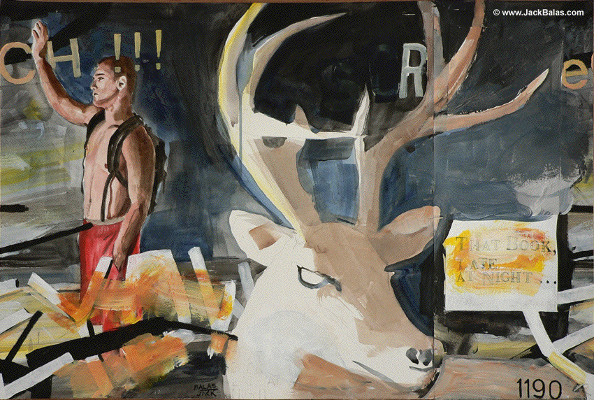 Jack Balas, 2015; THAT BOOK, LATE AT NIGHT (#1190); watercolor and acrylic on paper, 15" x 22"