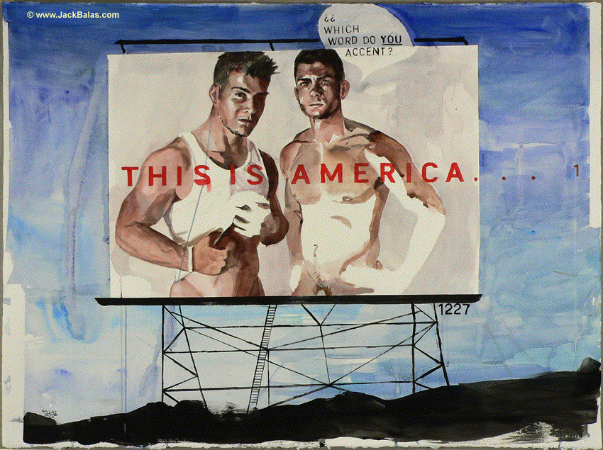 Jack Balas, 2015; THIS IS AMERICA (#1227); watercolor and acrylic on paper, 22" x 30"