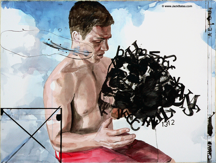 Jack Balas, 2016; A E I O U (#1312); watercolor, ink & acrylic on paper, 22" x 30"