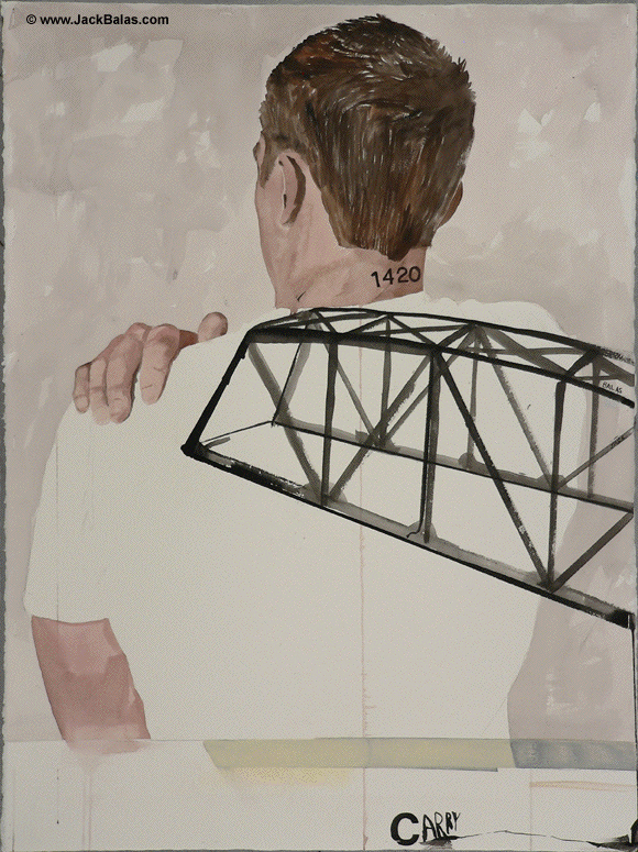 Jack Balas, 2016; CARRY (#1420); watercolor, ink and acrylic on paper, 30" x 22"
