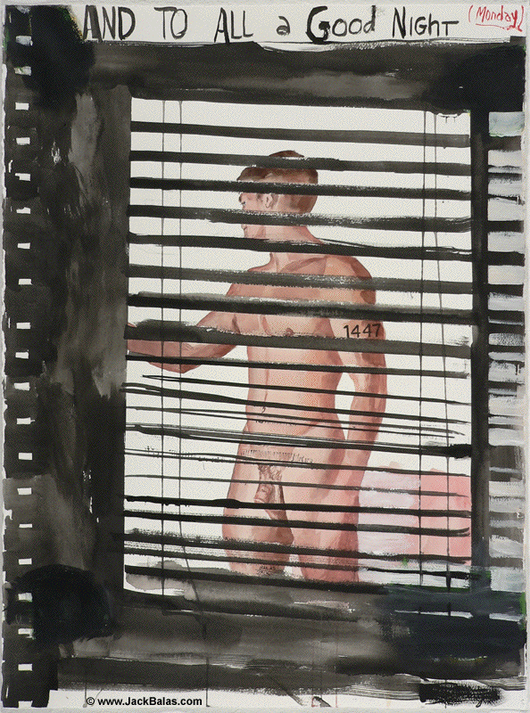 Jack Balas, 2017; AND TO ALL A GOOD NIGHT (MONDAY) (#1447); watercolor, ink and acrylic on paper, 30" x 22"