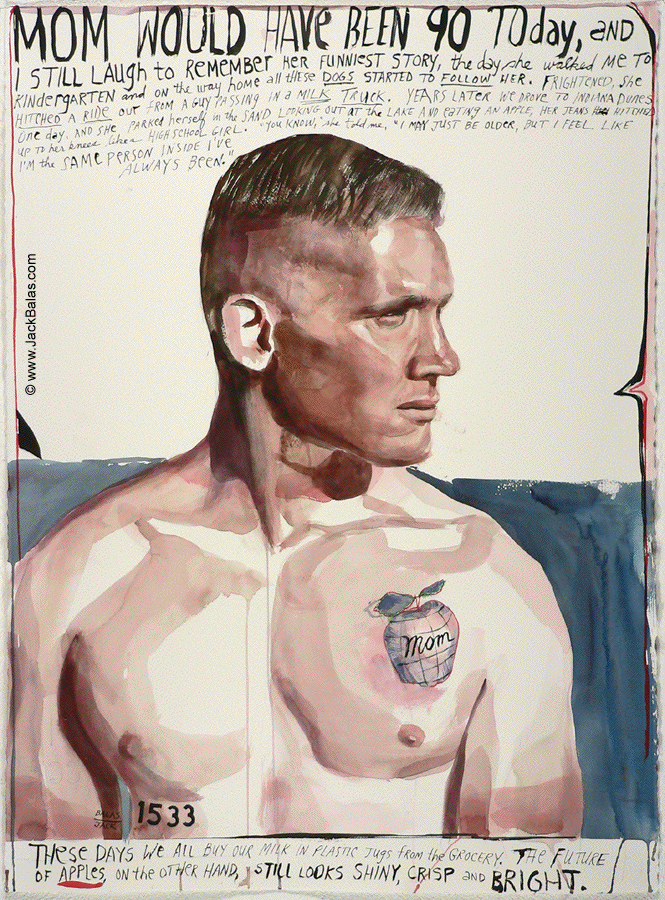 Jack Balas, 2017; MOM (#1533); watercolor & ink on paper, 30" x 22"
