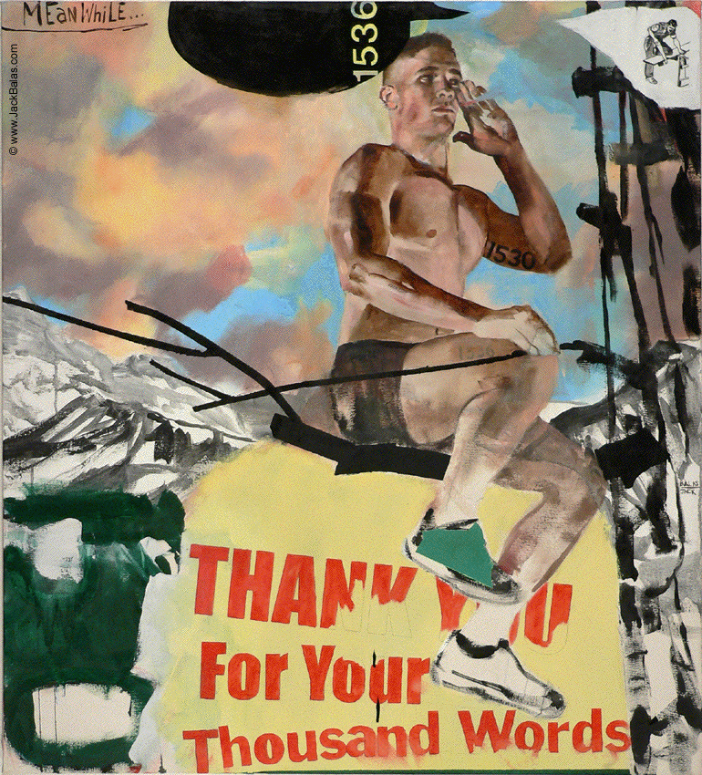 Jack Balas, 2017; THANK YOU FOR YOUR THOUSAND WORDS (#1530-1536); oil and enamel on canvas, 44" x 40"