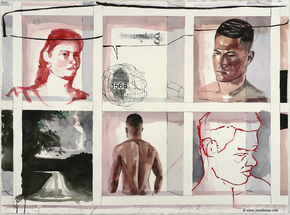 Jack Balas, 2018; HOMECOMING (#1568); watercolor, ink & acrylic on paper, 22" x 30"