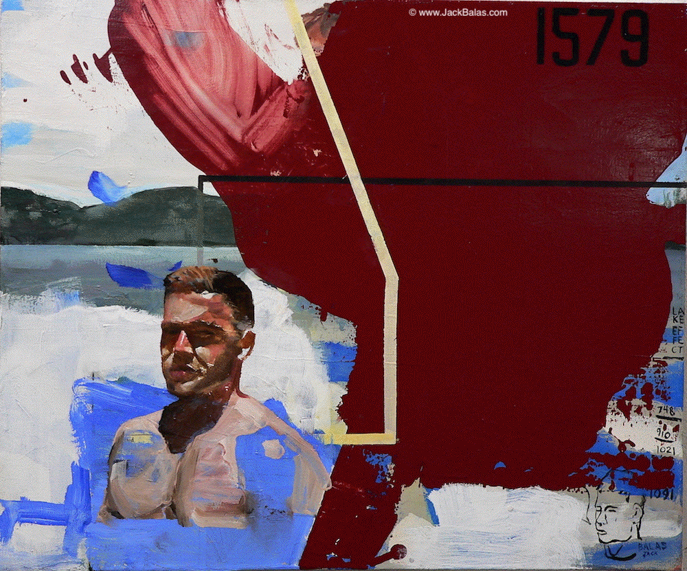 Jack Balas, 2018; LAKE EFFECT (# 1579, 1091, 1021, 910, 748) oil and enamel on canvas, 20" x 24"