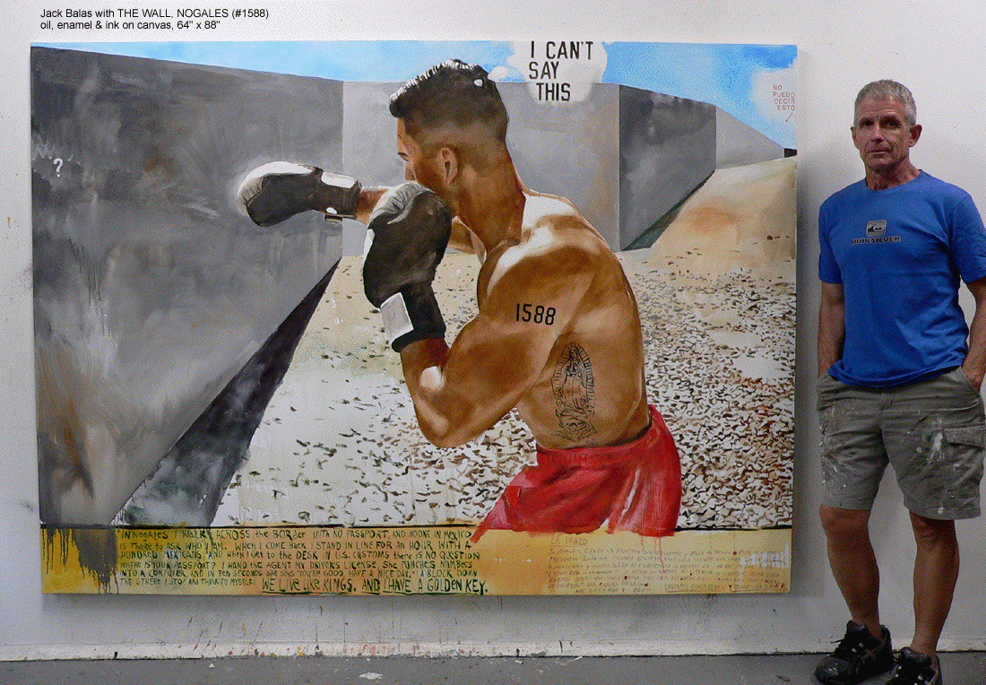 Jack Balas, 2018; THE WALL (LA PARED), NOGALES (NO PUEDO DECIR ESTO) (#1588); oil, enamel & ink on canvas, 64" x 88"