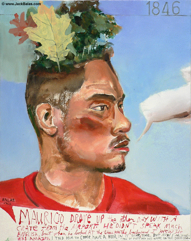 Jack Balas, 2019: MAURICIO (#1846); oil and ink on canvas, 20" x 16"