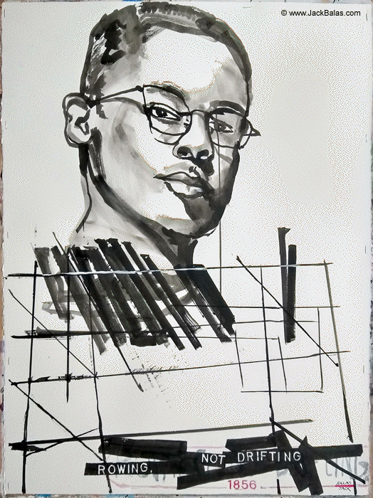 Jack Balas, 2019; ROWING, NOT DRIFTING (2); (#1856); ink and acrylic on paper, 30" x 22"