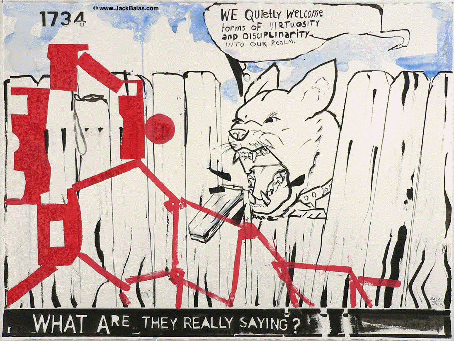 Jack Balas, 2019; WHAT ARE THEY REALLY SAYING? (#1734); watercolor, acrylic and ink on paper, 22" x 30"