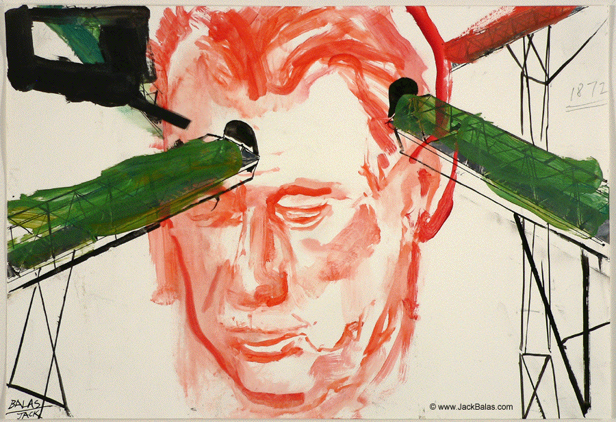 Jack Balas, 2020: FOUR BRIDGES (Study) (#1872); oil, acrylic and India ink on paper, 10.5" x 15.5"