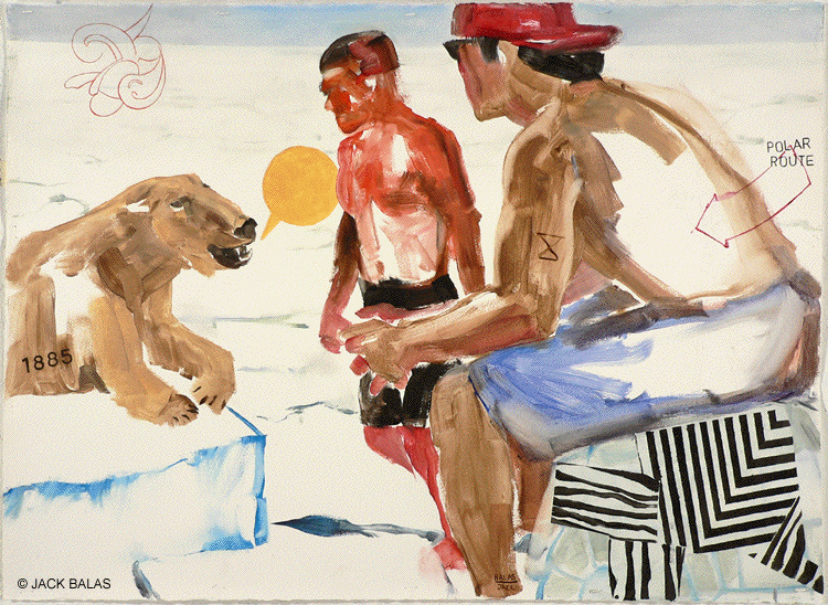 Jack Balas, 2020; POLAR ROUTE (#1885) oil & ink on paper, 22X30 inches.