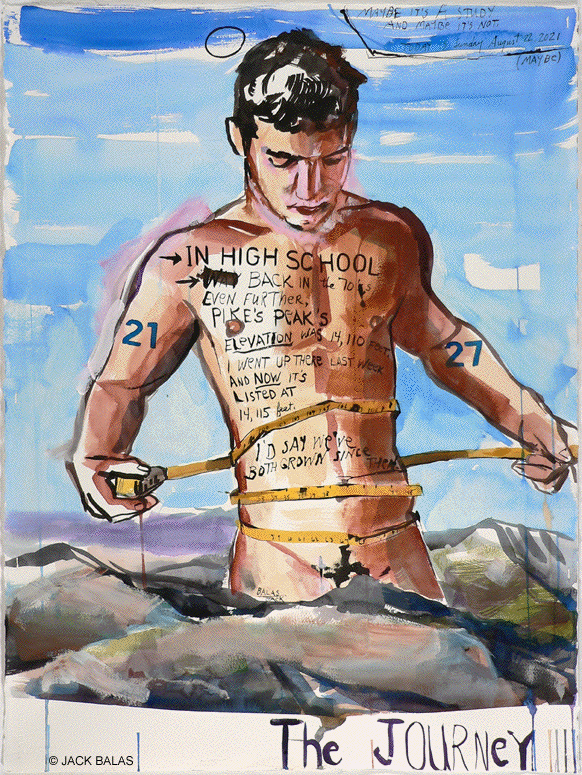 Jack Balas, 2021; The Journey (Pike's Peak) (#2127) India ink & acrylic on paper, 30x22 inches