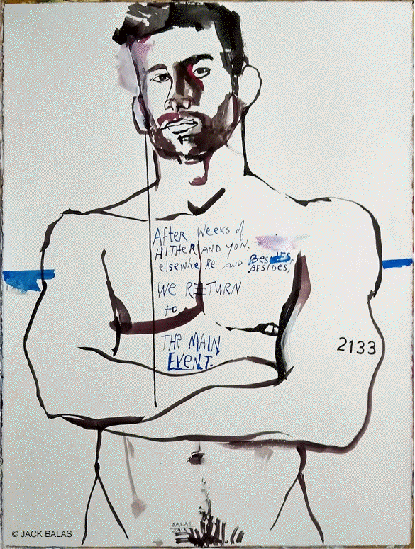Jack Balas, 2021 THE MAIN EVENT (#2133) India ink on paper, 30x22 inches