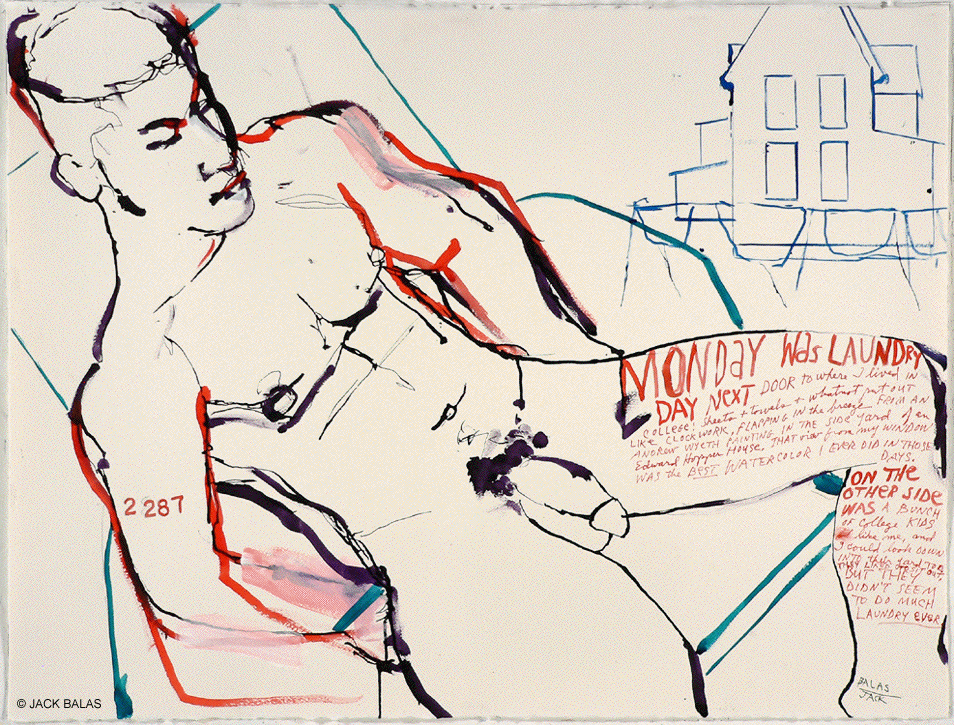 Jack Balas, 2022; LAUNDRY DAY (#2287); India ink and oil on paper, 22x30 inches.
