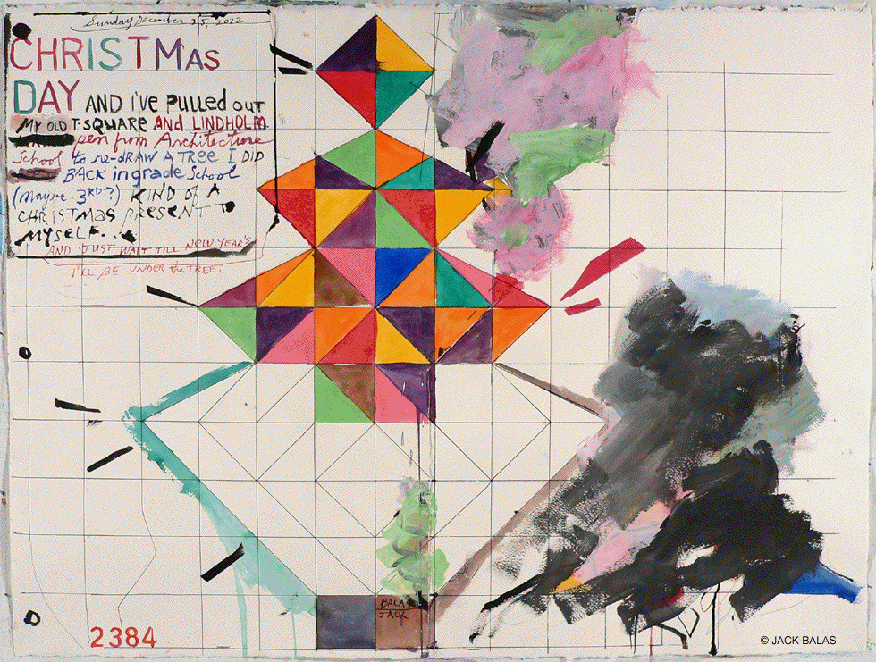 Jack Balas, 2022; CHRISTMAS DAY (#2384); India ink & acrylic on paper, 22x30 inches