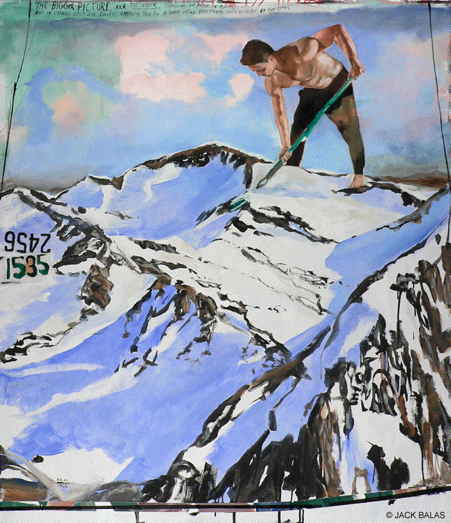 Jack Balas, 2023; THE BIGGER PICTURE (#2456.1535); oil & enamel on canvas, 52" x 45"