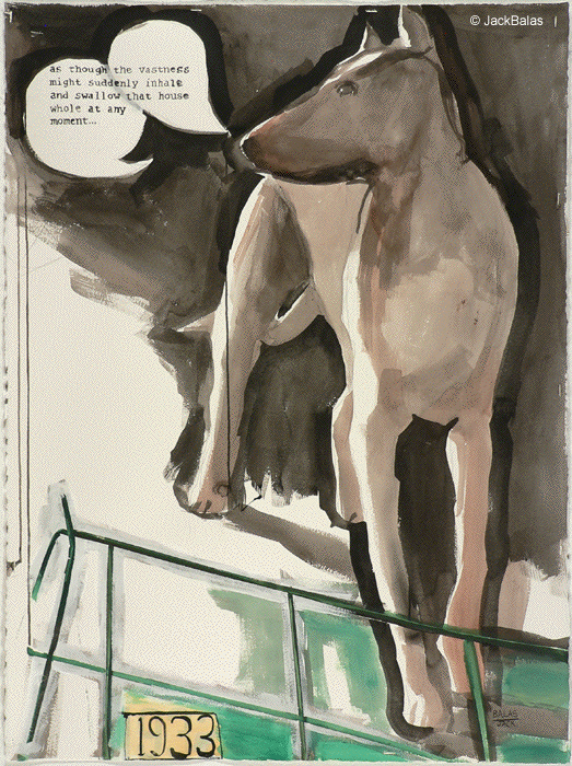 Jack Balas, 2020; DOG (AS THOUGH THE VASTNESS...) (#1933); India ink on paper, 30x22 inches.