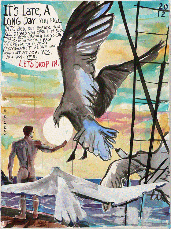 It's late, a long day. You fall into bed, but before you fall asleep you open that book that's been waiting for you, and there on the first page waiting for you is your protagonist, alone and far out at sea. YES, you say. YES. LET'S DROP IN. |