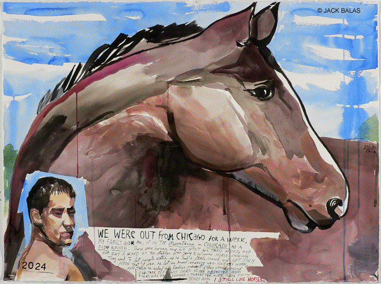 Jack Balas, 2020; I STILL LOVE HORSES (#2024), India ink and watercolor on paper, 22x30 inches |