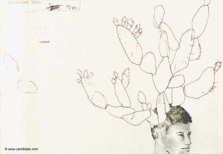 Jack Balas, 2004; CactusHead #73b (Brandon); ink on paper; 11" x 16"