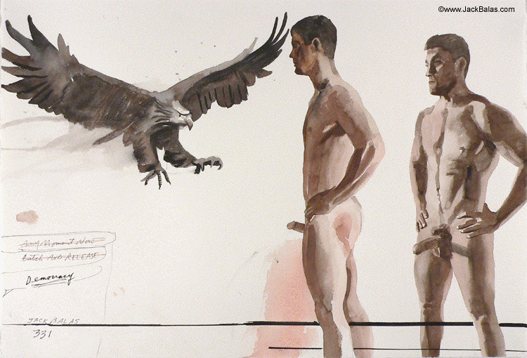 Jack Balas, 2007; DEMOCRACY (#331); watercolor and ink on paper; 15" x 23"