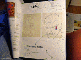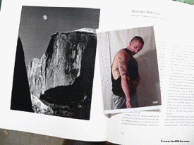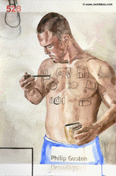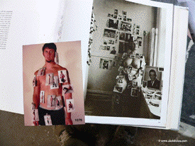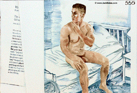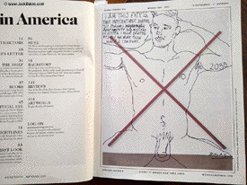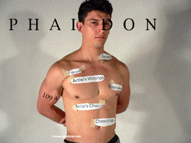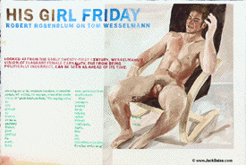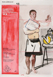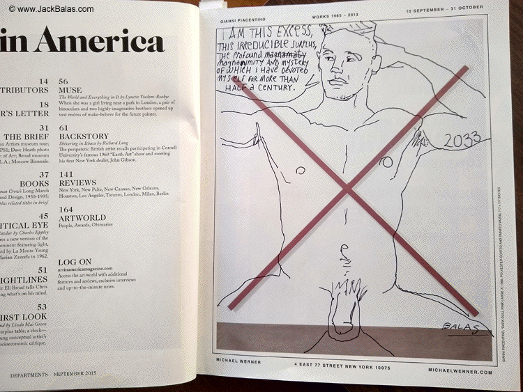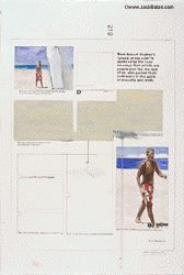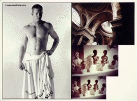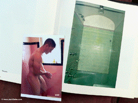Since 2009 I have been occasionally drawing my own images onto actual magazine pages themselves, and in 2013 began to explore the ideas through photography. Now in 2014 I have begun to position my own photographs next to images from my own collection of photography books. Within the conceptual framework I've laid out here, one could maintain that almost any of my own images would work combined with the advertising, and so why these particular images of men and not cats, cars or Cheerios? Most easily put, it's these men who are my muse. But beyond that, having grown up in a society whose media and museums have long privileged the nude (or nearly nude) female almost unthinkingly (just ask the Guerrilla Girls), whether it's work by Matisse, Picasso, Wesselmann, Koons or (fill in the blank), I am interested in asserting or inserting this particular muse as counterpoint. As I've stated about my photo series STUDIO MEN, my goal in this work has been to reach beyond whatever stereotypes we might be tempted to assign men so emblematic of today's obsession with youth and beauty (do we think of aloofness, privilege, a certain power structure?) I get to engage these "usual suspects" on a variety of levels, taking them off certain pedestals of perfection and, through portraiture and metaphor, put them back transformed. Their collaboration makes them complicit thus in our viewing of them, but their subsequent vulnerability empowers us at the same time. Can their ultimate defense be their humanity? Muse indeed. click on images for enlargements |