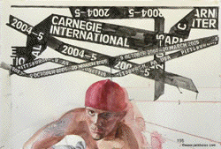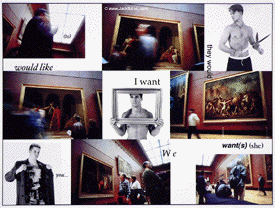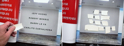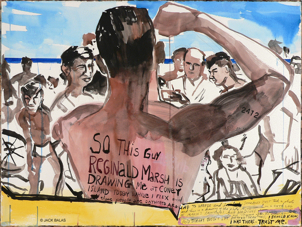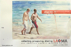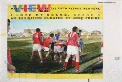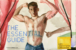 On the surface this series is "about" artists looking at art and the art world represented in art magazines; deeper down, however, the work contemplates the continuum of art and how artists influence each other. Since 2006 the works have combined my own painted imagery with hand-rendered museum and gallery advertising layouts appropriated from art magazines such as ARTFORUM, ART IN AMERICA and ART NEWS. As an artist looking at the magazines every month and visiting galleries and museums across the country, it's natural, I think, to imagine my own work on the pages and in the spaces. These paintings take the visualization process a step or two further, engaging issues of persona and autonomy at the same time. Advertising, of course, has the multiple task of conveying nuts and bolts information while creating a certain look or "cool factor" for said gallery or museum, and then lending that look to the artist of the moment. To hand-render that information in these paintings not only acknowledges graphic design and advertising as arts in themselves, but raises questions about how that "cool factor" can actually reinforce or compete with the art depicted. By taking ads from certain institutions that have not to date shown my work and layering hand-drawn renditions over my own images, I signal a certain complicity with the system, acknowledging that the mechanics of presentation can be as important as the images themselves. But what happens if the resulting paintings are "distributed" in a different way, for example in a book or catalog? Or if the museums or galleries whose ads I've appropriated then hang these paintings on their wall? In one regard the paintings would transform from fiction into fact. In another, it might be like looking into a mirrored room: you lose track of what's original and what's reproduction. Whatever the case, there is a certain power-taking that accompanies these appropriations, one that posits the artist not only as director but as producer as well. While the related 1998 series NAME MATTERS presented my own name among lists of blue-chip artists' names in gallery ads, in MUSE/ MUSEUM the act of layering other artists' names (eg. Warhol, Sherman, Serra) over my own images functions very differently. The combinations acknowledge the continuum of art as well as the influence artists have exerted over each other across centuries. For years I've carried these other artists' bodies of work around in my head. These paintings, in a sense, return the favor. In 2011 I began to focus some of the work on specific paintings by other artists, in particular works found in the collection of the Art Institute of Chicago, whose galleries I wandered growing up in the city. As of this writing, my "collection" includes Grant Wood's AMERICAN GOTHIC, Reginald Marsh's TATTOO AND HAIRCUT, Toulouse Lautrec's AT THE MOULIN ROUGE, Jules Breton's SONG OF THE LARK, William Bouguereau's THE BATHERS, and Ivan Albright's INTO THE WORLD THERE CAME A SOUL CALLED IDA, all employing the curatorial information to be found on the museum's wall tags. Included in this mix is the Art Institute's guidebook, THE ESSENTIAL GUIDE, as well.