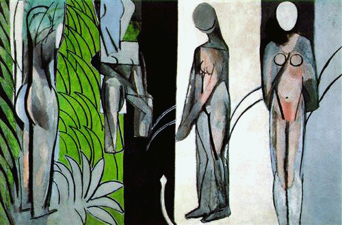 Jack Balas, 2014; HENRI MATISSE, BATHERS BY A RIVER (Muse/ Museum Series) (# 1176); ink on four sheets of paper, 22" x 28" overall