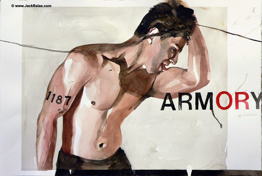 Jack Balas, 2015; ARMORY (Muse/ Museum Series) (# 1187); watercolor and ink on paper, 15" x 23"