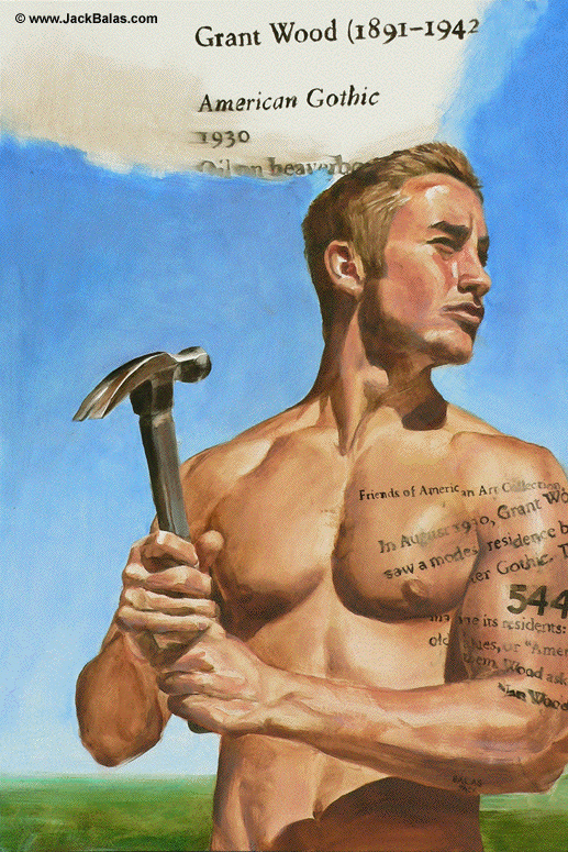 Jack Balas, 2011; GRANT WOOD: AMERICAN GOTHIC (#544) (from the Muse / Museum Series); oil on paper, 23" x 15"