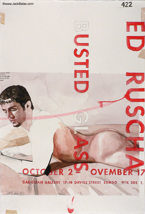 Jack Balas, 2008; ED RUSCHA, (B)USTED (GL)ASS (Muse/Museum series) (#422) watercolor, ink, acrylic and pencil on paper; 23" x 15"