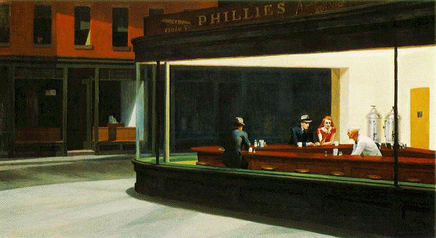 Jack Balas, 2011; EDWARD HOPPER NIGHTHAWKS (#542) (Muse Museum series); oil on paper; 15" x 22.5"