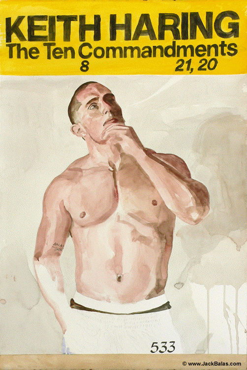 Jack Balas, 2011; KEITH HARING: THE TEN COMMANDMENTS (Muse/Museum series) (#533); watercolor on paper, 23" X 15"