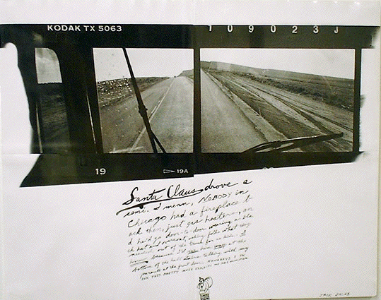 SANTA CLAUS DROVE A SEMI. Text: "Santa Claus drove a semi. I mean, nobody in Chicago had a fireplace back then, just gas heaters, and he'd go door-to-door wearing a black hat and overcoat asking folks what they needed out of the truck for us kids. I know because I'd see him way at the bottom of the hall stairs talking with my parents at the front door. Nowadays I think this pretty much explains this job I wound up with."