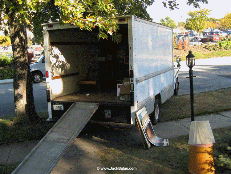 aside, and then piling it into the Budget truck and walking through